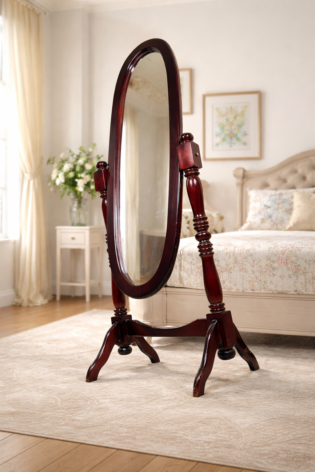 খাঁটি কাঠের তৈরি এই সুন্দর ফুল-লেংথ স্ট্যান্ডিং মিরর আপনার বেডরুমের এক পাশে রাখলেই ঘরের সৌন্দর্য কয়েকগুণ বেড়ে যাবে।